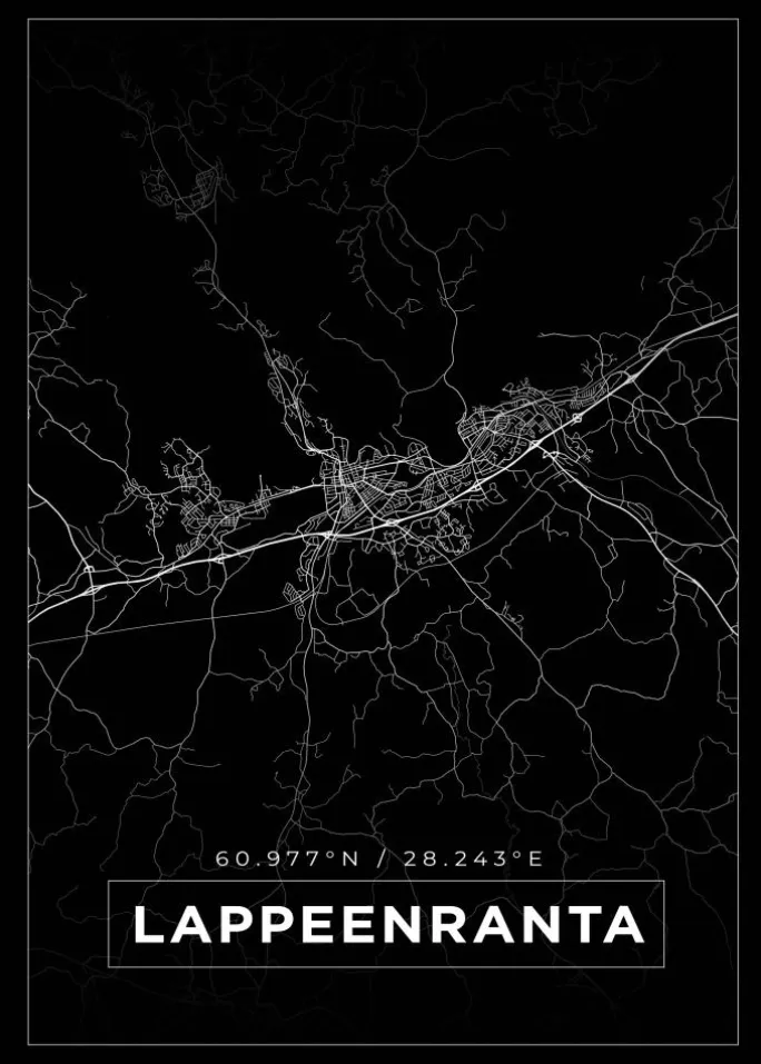 Kort – Lappeenranta – Sort Plakat (21×29.7 cm (A4))