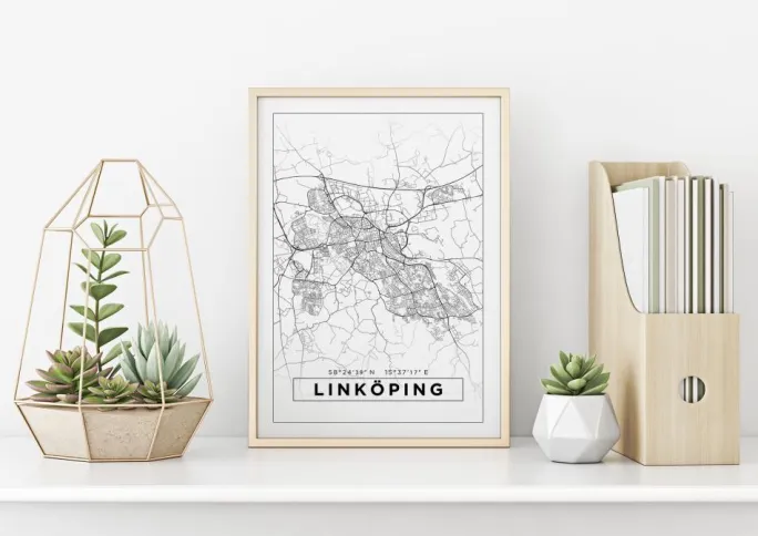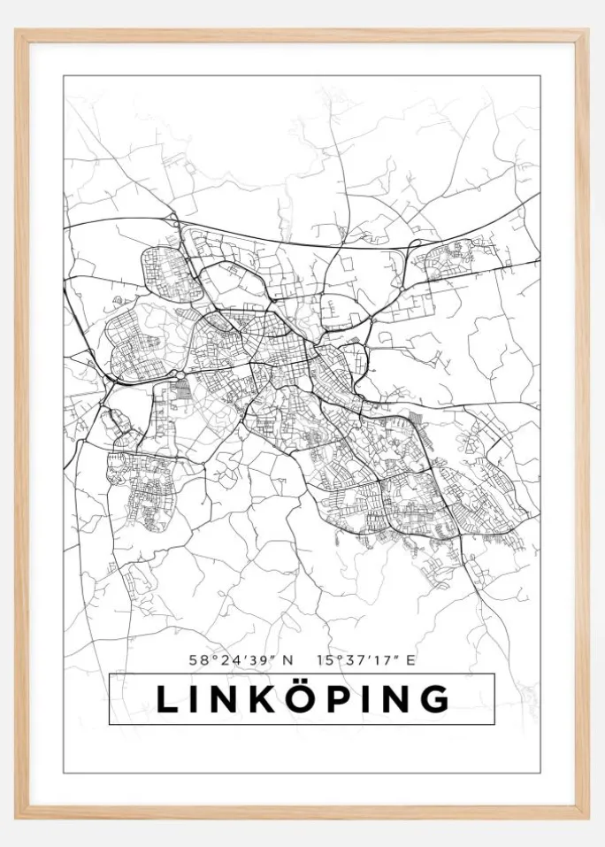 Kort – Linköping – Hvid Plakat (21×29.7 cm (A4))