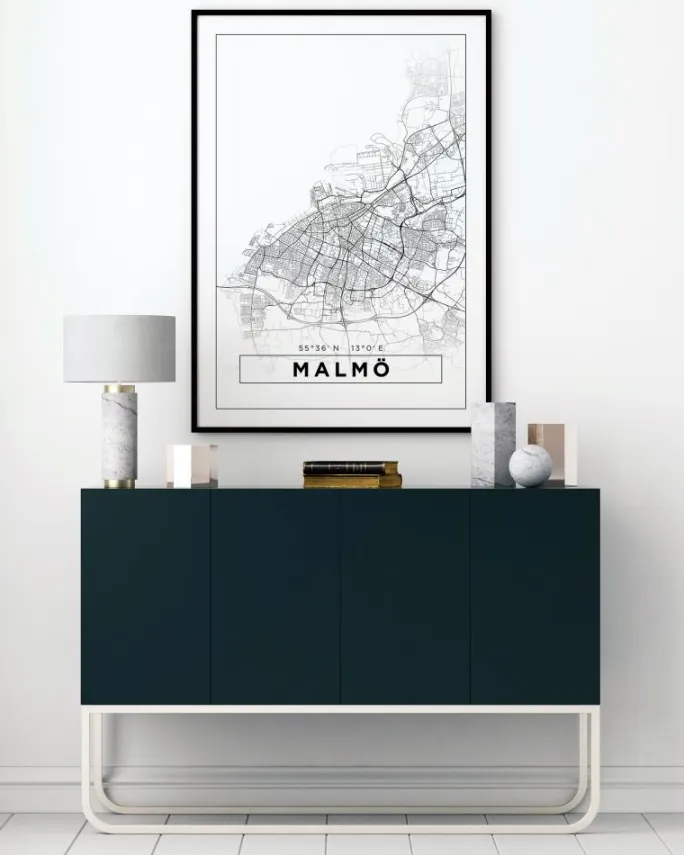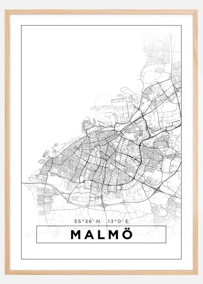 Kort – Malmø – Hvid Plakat (21×29.7 cm (A4))