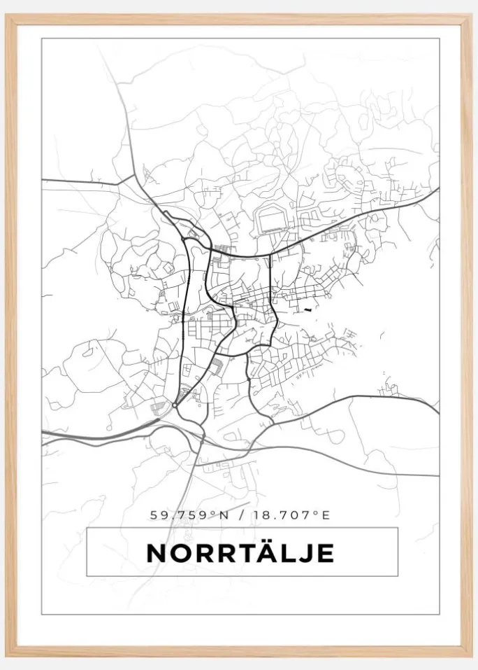 Kort – Norrtälje – Hvid Plakat (21×29.7 cm (A4))