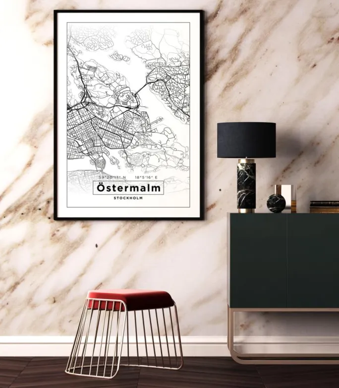 Kort – Östermalm – Hvid Plakat (21×29.7 cm (A4))