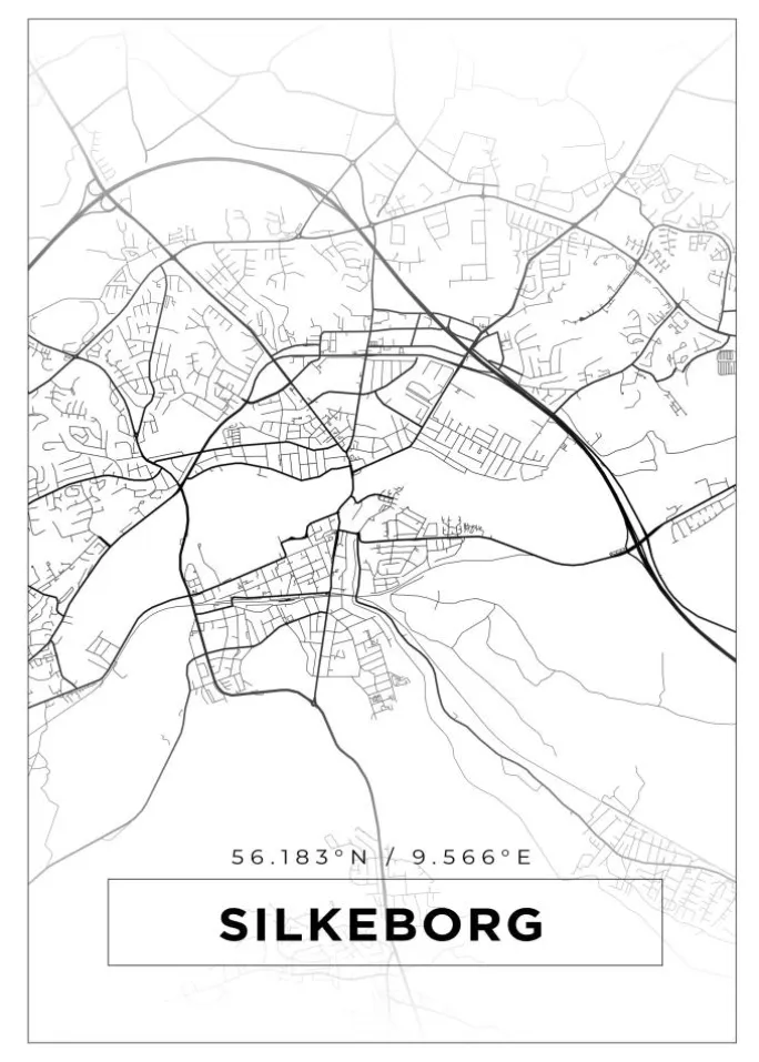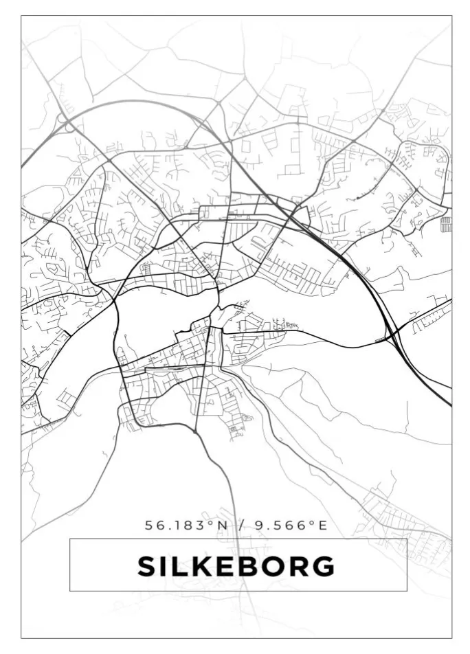 Kort – Silkeborg – Hvid Plakat (21×29.7 cm (A4))