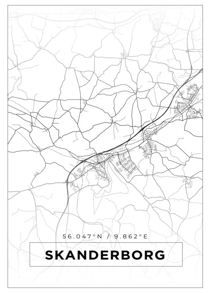 Kort – Skanderborg – Hvid Plakat (21×29.7 cm (A4))