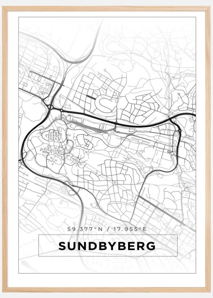 Kort – Sundbyberg – Hvid Plakat (21×29.7 cm (A4))