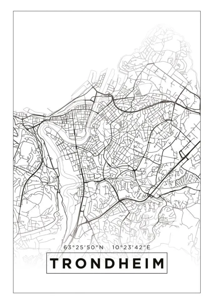 Kort – Trondheim – Hvid Plakat (21×29.7 cm (A4))