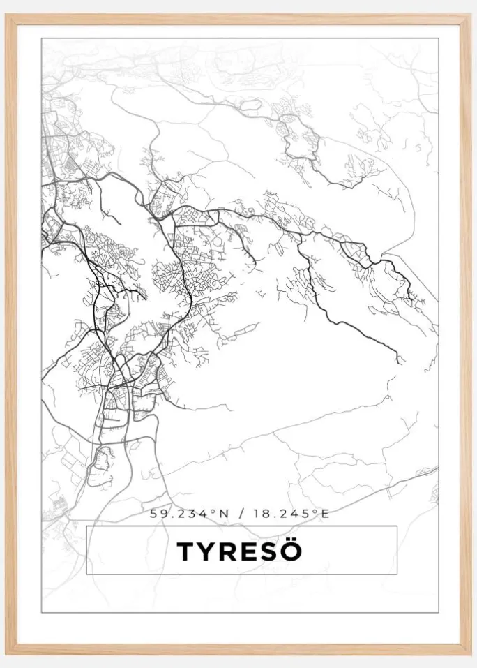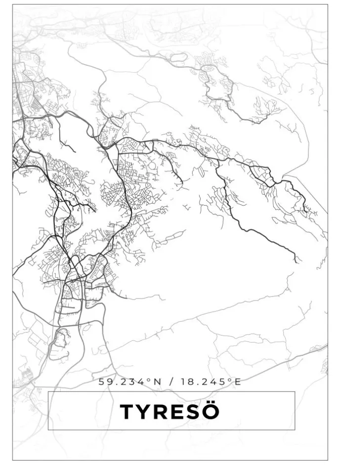 Kort – Tyresö – Hvid Plakat (21×29.7 cm (A4))