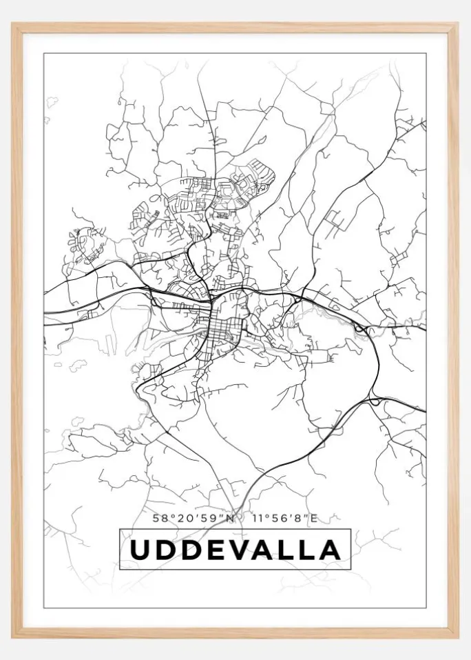 Kort – Uddevalla – Hvid Plakat (21×29.7 cm (A4))