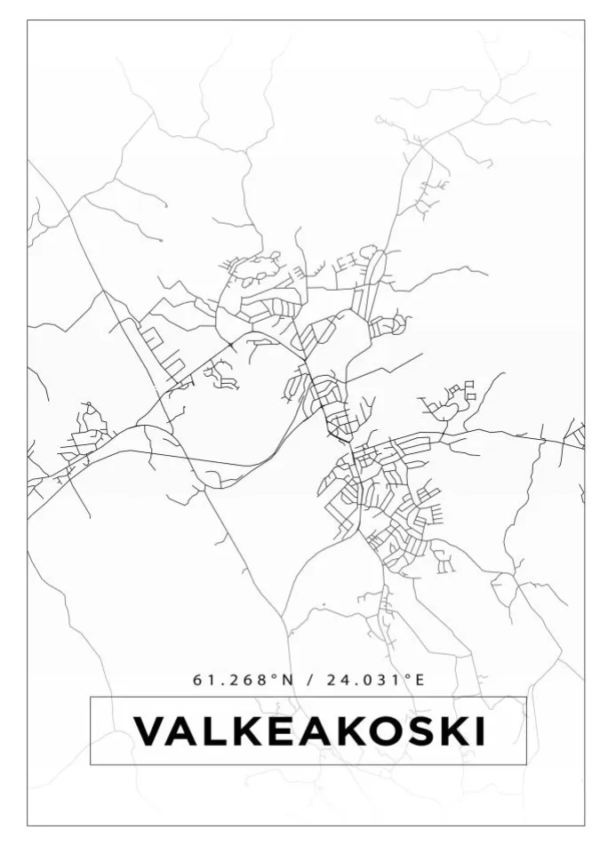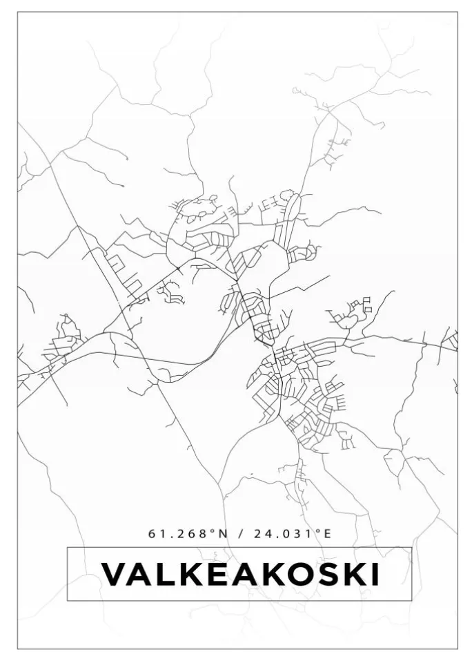 Kort – Valkeakoski – Hvid Plakat (21×29.7 cm (A4))