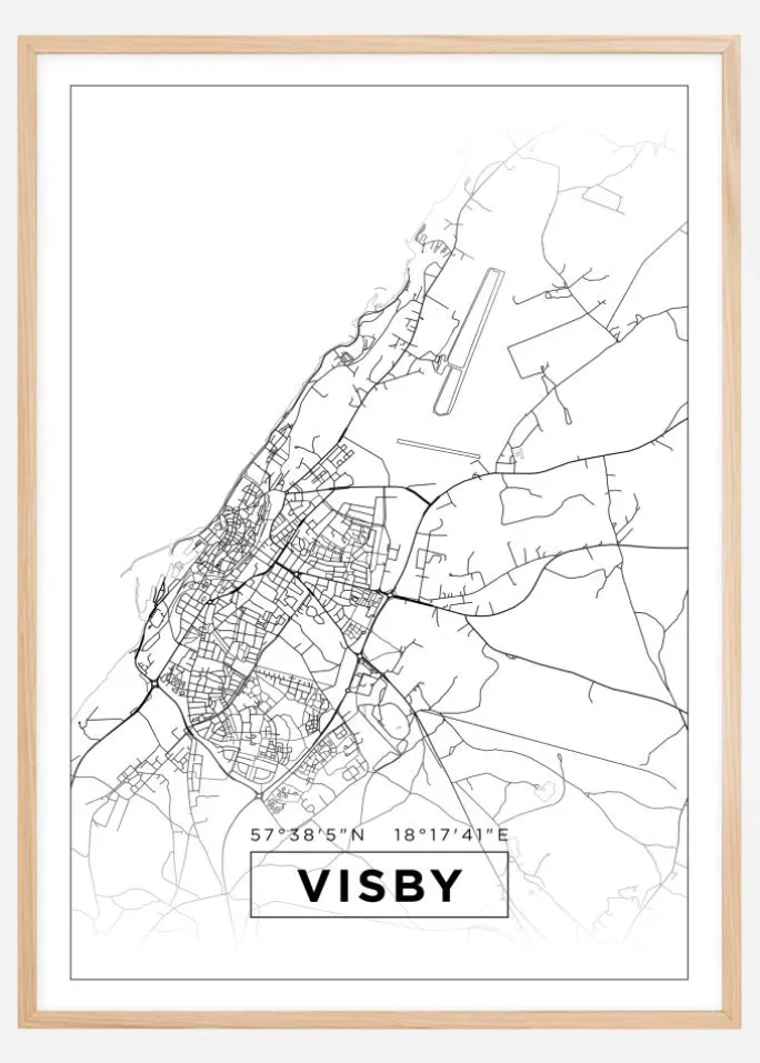 Kort – Visby – Hvid Plakat (21×29.7 cm (A4))
