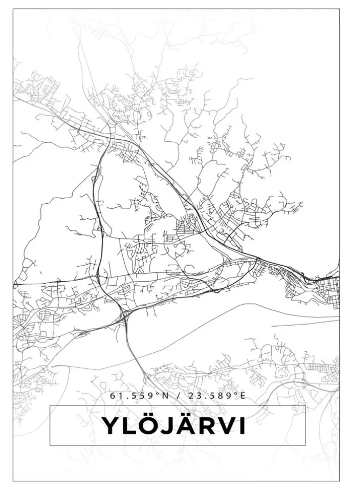 Kort – Ylöjärvi – Hvid Plakat (21×29.7 cm (A4))