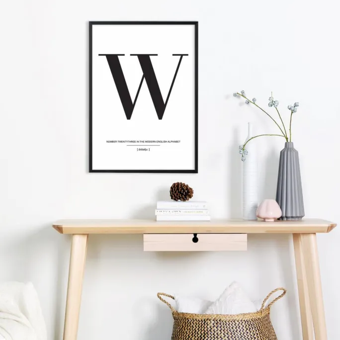 I enkelheden findes det smukke, og det beviser virkelig denne stilrene plakat med bogstavet Ä i sort mod en hvid baggrund. Printet har en flot typografi og bør komplementeres med andre bogstavsplakater fra samme serie for at skabe en trendy og smuk billedvæg. Vælg dine favoritplakater med bogstaver på og vælg blandt vores store sortiment af kvalitetsrammer, så er det bare at lade fantasien flyde derhjemme på væggene.