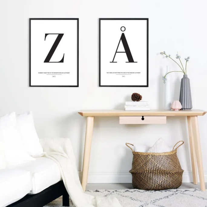 I enkelheden findes det smukke, og det beviser virkelig denne stilrene plakat med bogstavet Z i sort mod en hvid baggrund. Printet har en flot typografi og bør komplementeres med andre bogstavsplakater fra samme serie for at skabe en trendy og smuk billedvæg. Vælg dine favoritplakater med bogstaver på og vælg blandt vores store sortiment af kvalitetsrammer, så er det bare at lade fantasien flyde derhjemme på væggene.