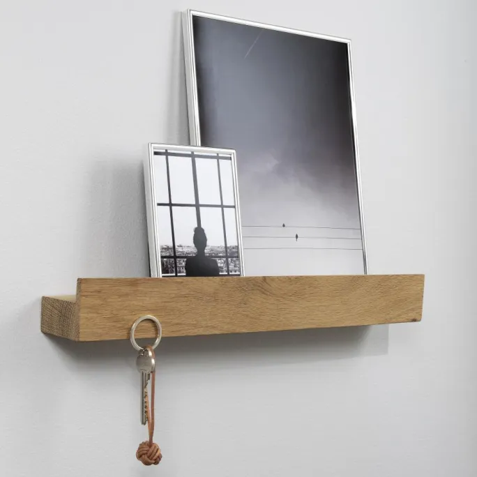 - Hylle af egetræ med indbygget magnetliste