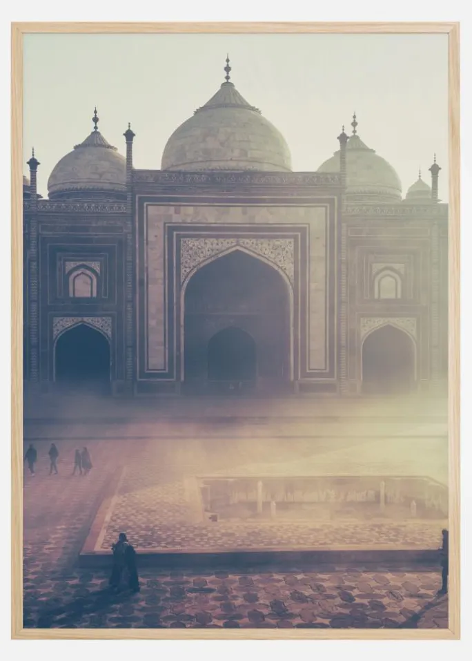 Den muslimske verdens åndelige centrum står selvsikkert over pladsen i forgrunden. En lille gruppe mennesker strejfer rundt på pladsen gennem en lysende oplyst dvælende tåge. Den største af moskéens indgange er flankeret af mindre indgange til både venstre og højre. Et fredfyldt tryk, der skaber en beroligende atmosfære.