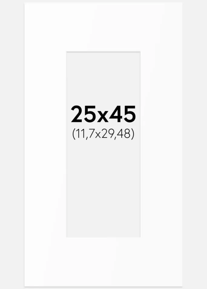 Denne elegante passepartout i hvid nuance er det perfekte valg for at fremhæve dine billeder og kunstværker. Med en skråtskåret inderside i samme hvide farve skabes en stilfuld indramning, som giver dybde og dimension til dit motiv. Passepartouten er designet til at passe til billeder i størrelsen 12.7×30.48 cm (5×12 inches), mens ydermålet er 25×45 cm, hvilket gør den ideel til forskellige typer af rammer.