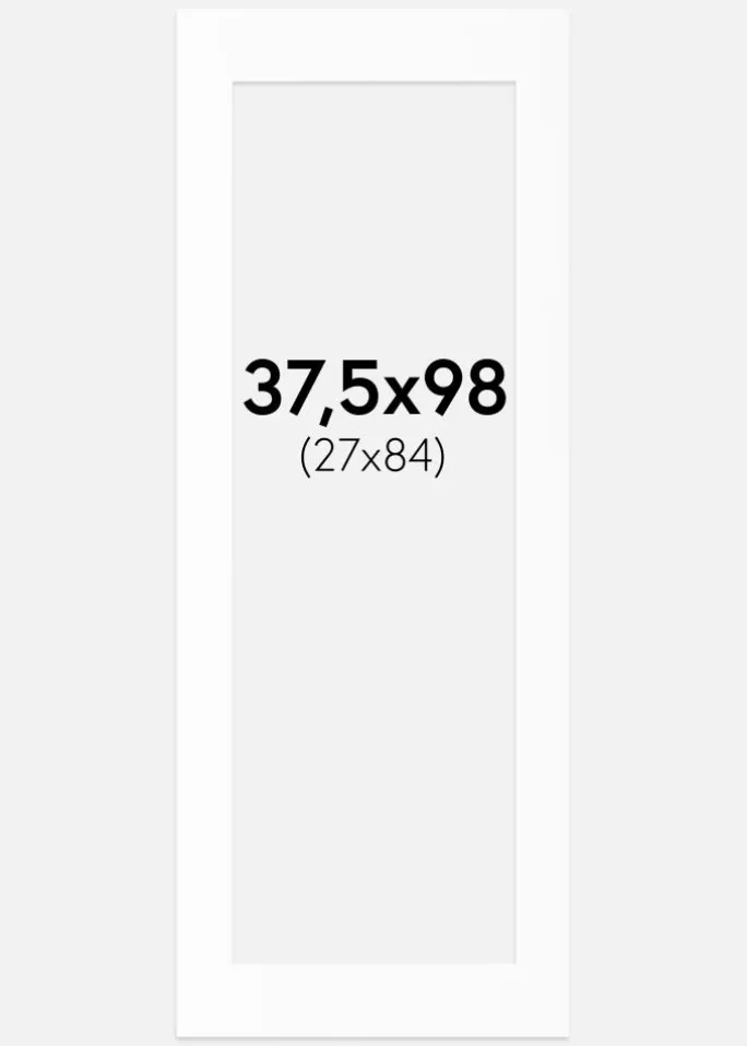 Denne elegante passepartout i hvid nuance er det perfekte valg for at fremhæve dine billeder og kunstværker. Med en indre størrelse, der passer til billeder i 28×85 cm og et ydre mål på 37.5×98 cm, tilbyder den en stilren og professionel indramning. Den skråtskårne indre kant i samme hvide farve skaber en subtil dybde, der fremhæver motivet på en smagfuld måde.