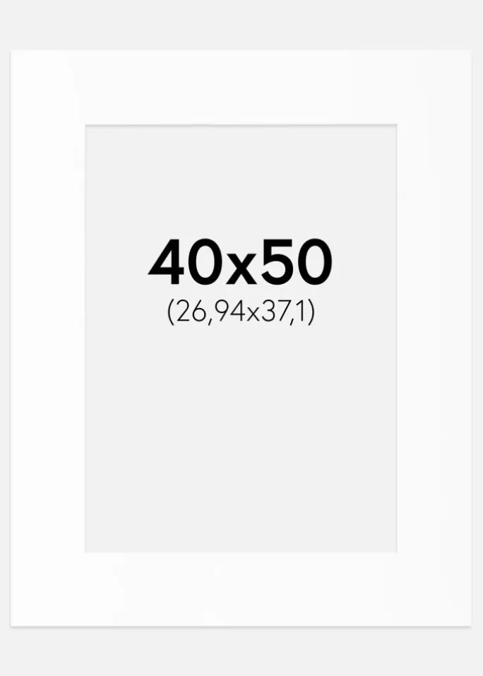 Denne elegante passepartout i hvid nuance er det perfekte valg til at fremhæve dine billeder og kunstværker. Med en indre størrelse der passer til billeder på 27,94×38,1 cm (11×15 inches) og et ydre mål på 40×50 cm, tilbyder den en smuk indramning, der giver dine motiver den opmærksomhed, de fortjener.