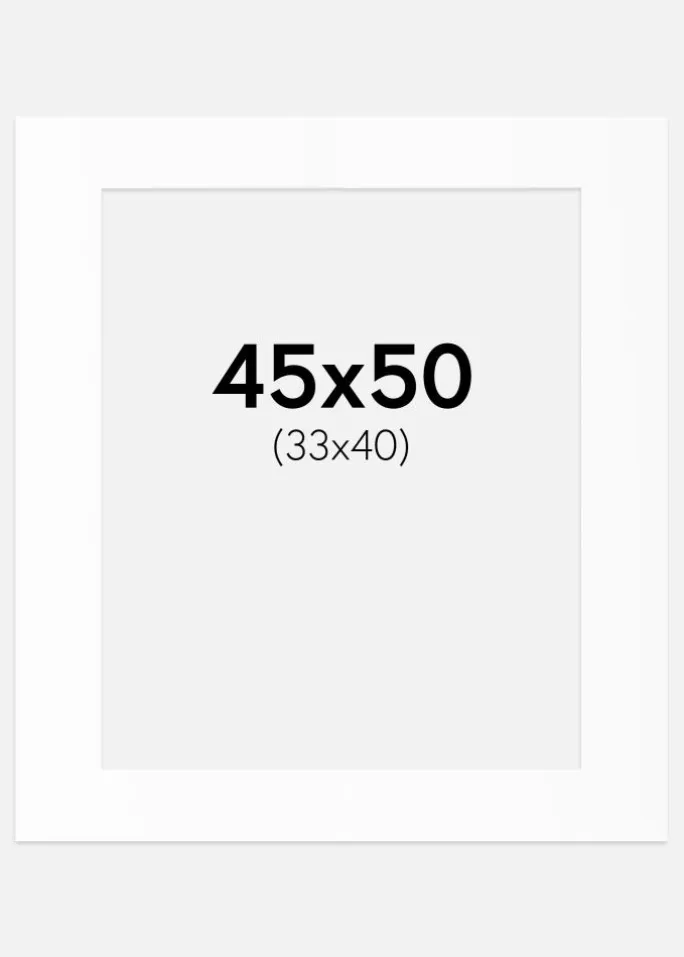 Denne elegante passepartout i hvid nuance er det perfekte valg til at give dine billeder og kunstværker en stilfuld indramning. Med en skråskåret indre kant i samme hvide farve skabes en dybde, der fremhæver motivet på en sofistikeret måde. Passepartouten er designet til at passe billeder i størrelsen 34×41 cm, mens ydermålet er 45×50 cm, hvilket gør den ideel til en række forskellige rammer.