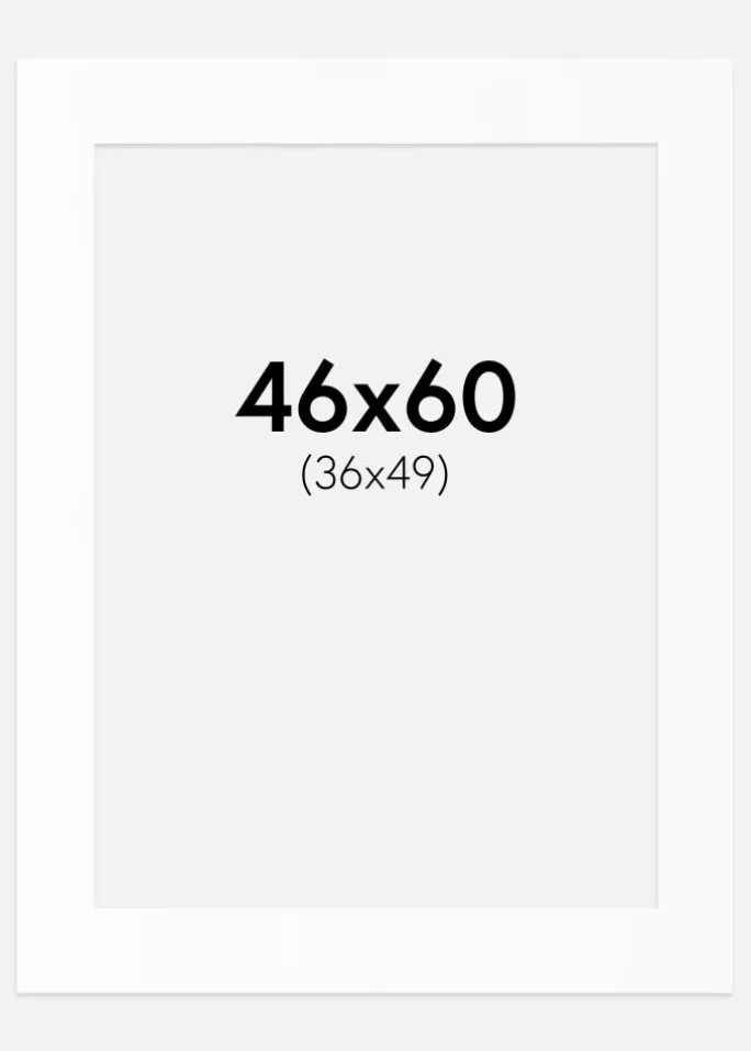 Denne elegante passepartout i hvid nuance er det perfekte valg til at give dine billeder og kunstværker en stilfuld indramning. Med en skråskåret indre kant i samme hvide farve skabes en dybde, der fremhæver motivet på en sofistikeret måde. Passepartouten er designet til at passe billeder i størrelsen 37×50 cm, mens ydermålet er 46×60 cm, hvilket gør den ideel til en række forskellige rammer.