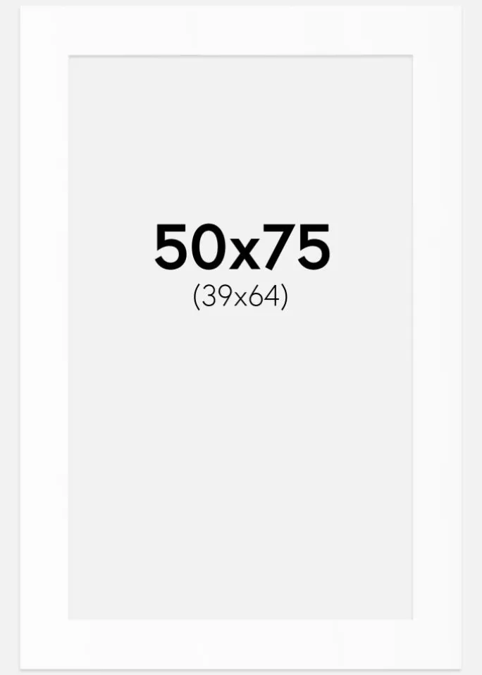 Denne elegante passepartout i hvid nuance er det perfekte valg til at give dine billeder og kunstværker en stilfuld indramning. Med en skråtskåret inderkant i samme hvide farve skabes der en dybde, som fremhæver motivet på en sofistikeret måde. Passepartouten er designet til at passe billeder i størrelsen 40×65 cm, mens ydersiden måler 50×75 cm, hvilket gør den ideel til en bred vifte af rammer.