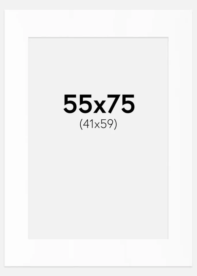 Denne elegante passepartout i hvid nuance er det perfekte valg for at give dine billeder og kunstværker en stilfuld indramning. Med en skråtskåret indre kant i samme hvide farve skabes der en dybde, der fremhæver motivet på en sofistikeret måde. Passepartouten er designet til at passe til billeder i størrelsen 42×60 cm, mens ydermålet er 55×75 cm, hvilket gør den ideel til en række forskellige rammer og indretningsstile.