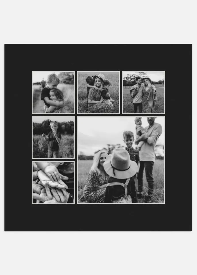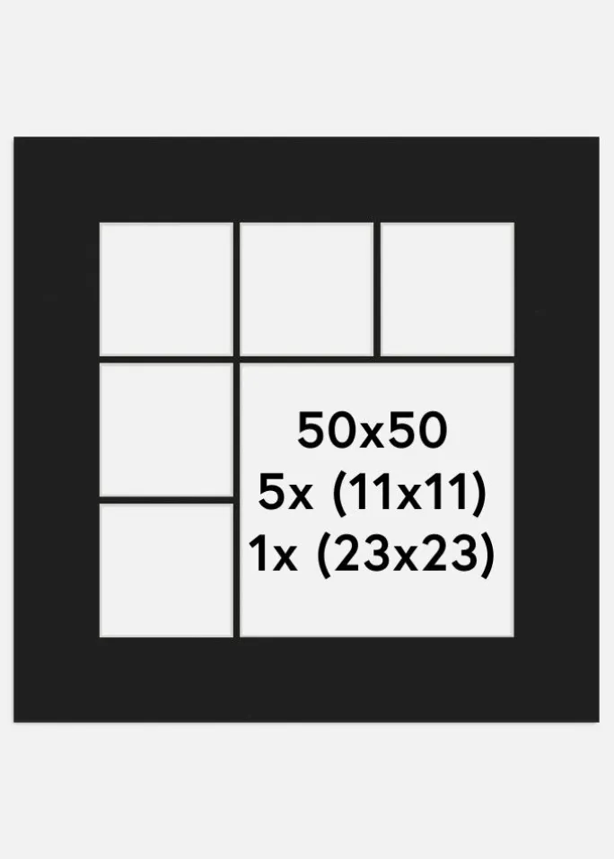 - Indvendige mål passepartout*11,5×11,5 cm (5 st) & 23,5×23,5 cm (1 st)