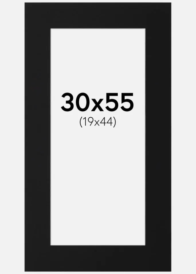 Denne elegante passepartout er det perfekte valg til at fremhæve dine billeder og kunstværker på en smagfuld måde. Med en stilren sort farve og en skråskåret inderkant med hvid kerne skaber den en subtil kontrasteffekt, der giver dybde og elegance til din indramning. Passepartouten er designet til at passe billeder i størrelsen 20×45 cm, mens ydermålet er 30×55 cm, hvilket giver en smuk indramning med en jævn og harmonisk kant rundt om dit motiv.