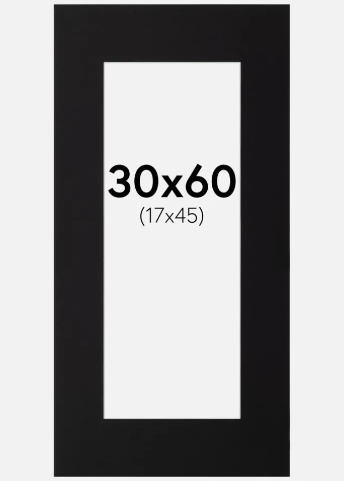 Dette elegante passepartout i sort er det perfekte valg for at give dine billeder en stilfuld indramning. Med en skråt skåret inderkant og en hvid kerne skabes en subtil kontrasteffekt, der giver dybde og elegance til dit motiv. Passepartouten er designet til at passe billeder i størrelsen 18×46 cm, mens ydermålet er 30×60 cm, hvilket gør den ideel til både moderne og klassisk indramning.