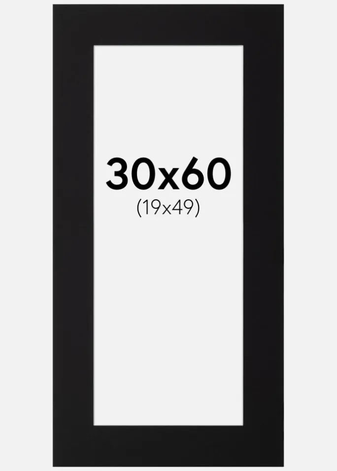 Denne elegante passepartout i sort er det perfekte valg for at give dine billeder en stilfuld indramning. Med en størrelse, der passer til billeder på 20×50 cm og et ydre mål på 30×60 cm, tilbyder den en smuk indramning, der fremhæver motivet på en smagfuld måde. Den sorte farve giver et professionelt og tidløst udseende, hvilket gør den ideel til både moderne og klassiske indramninger.
