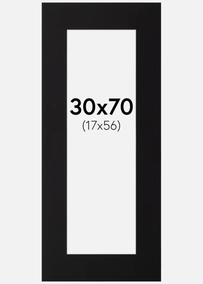 Denne elegante passepartout i sort er det perfekte valg til at give dine billeder en stilfuld indramning. Med en skråskåret inderkant og en hvid kerne skabes en subtil kontrasteffekt, der giver dybde og elegance til dit motiv. Passepartouten er designet til at passe billeder i størrelsen 18×57 cm, mens ydermålet er 30×70 cm, hvilket gør den ideel til at fremhæve både portrætter og kunstværker.