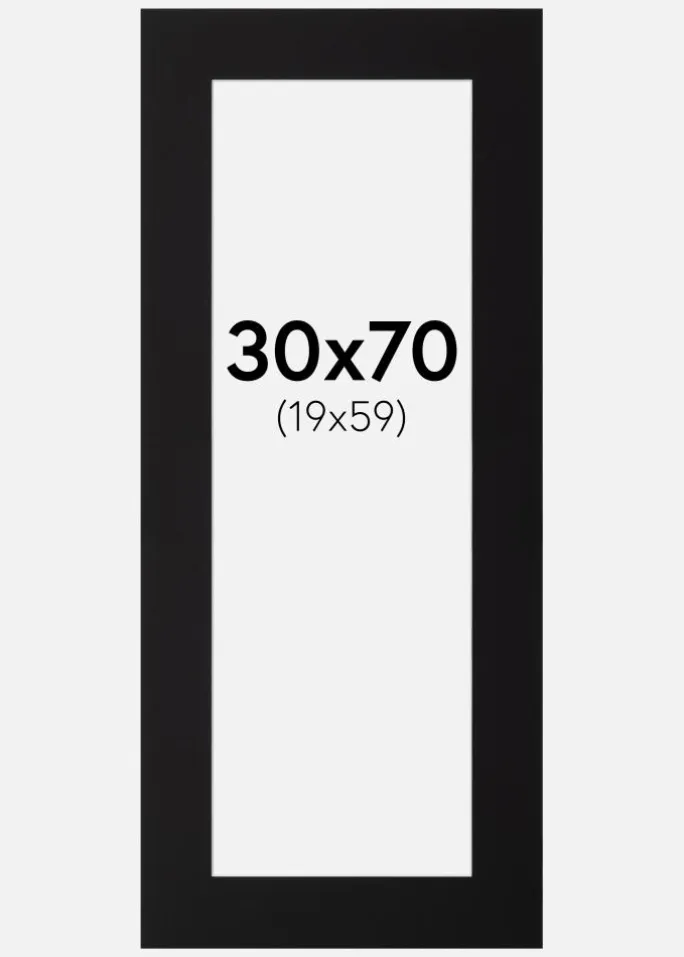 Dette elegante passepartout i sort er det perfekte valg til at give dine billeder en stilfuld indramning. Med en skråtskåret inderkant og en hvid kerne skabes der en subtil kontrasteffekt, som giver dybde og elegance til dit motiv. Passepartouten er designet til at passe billeder i størrelsen 20×60 cm, mens ydre dimensionen er 30×70 cm, hvilket gør det ideelt til at fremhæve både portrætter, kunstværker og fotografier.