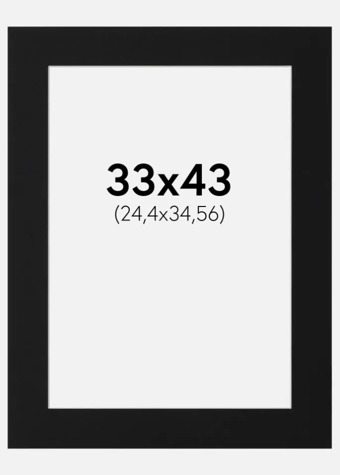 Denne elegante passepartout i sort er det perfekte valg for at give dine billeder og kunstværker en stilfuld indramning. Med en skråtskåret inderside og en hvid kerne skabes en subtil kontrasteffekt, der giver dybde og elegance til dine motiver. Passepartouten er designet til at passe billeder i størrelsen 25,4×35,56 cm (10×14 inches) og har et ydre mål på 33×43 cm, hvilket gør den ideel til både moderne og klassiske indramninger.