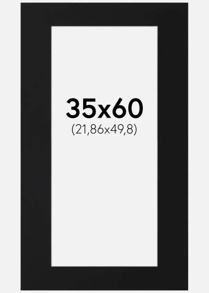 Denne elegante passepartout i sort er det perfekte valg til at give dine billeder og kunstværker en stilfuld indramning. Med en skråtskåret inderkant og en hvid kerne skabes en subtil kontrasteffekt, der giver dybde og elegance til dit motiv. Passepartouten er designet til at passe billeder i størrelsen 22,86×50,8 cm (9×20 inches), mens ydre dimensionerne er 35×60 cm, hvilket gør den ideel til både moderne og klassiske indramninger.