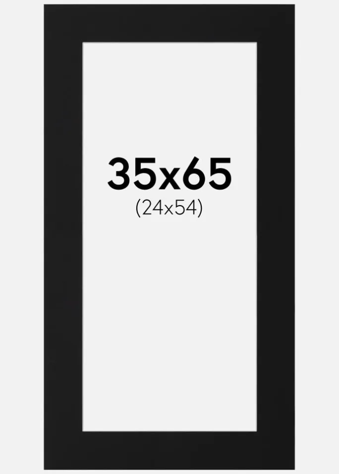 Denne elegante passepartout i sort er det perfekte valg for at give dine billeder og kunstværker en stilfuld indramning. Med en skråskåret inderkant og en hvid kerne skabes en subtil kontrasteffekt, der giver dybde og elegance til dit motiv. Passepartouten er designet til at passe billeder i størrelsen 25×55 cm, mens ydermålet er 35×65 cm, hvilket giver en smuk indramning med en jævn og harmonisk kant rundt om dit værk.