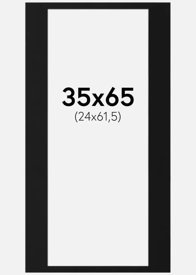 Denne elegante passepartout i sort er det perfekte valg for at give dine billeder og kunstværker en stilfuld indramning. Med en skråtskåret inderkant og en hvid kerne skabes en subtil kontrasteffekt, der giver dybde og elegance til dit motiv. Passepartouten er designet til at passe til billeder i størrelsen 25×62,5 cm, mens de ydre mål er 35×65 cm, hvilket gør den ideel til både moderne og klassiske indramninger.