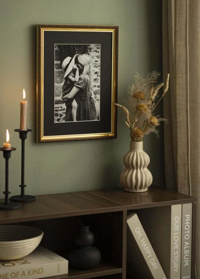 Fremstillet af syrefri karton, beskytter denne passepartout dine billeder mod at gulne over tid. Det syrefrie og PH-neutrale materiale sikrer, at dine kunstværker bevarer deres oprindelige farve og skarphed i lang tid. Den matte sorte overflade giver et tidløst udseende, der passer både moderne og klassiske indramninger, hvilket gør den ideel til portrætter, kunstværker eller fotografier.