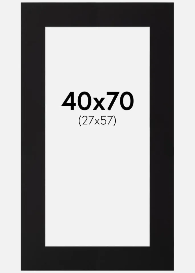 Denne elegante passepartout i sort er det perfekte valg for at give dine billeder og kunstværker en stilfuld indramning. Med en skråskåret inderkant og en hvid kerne skabes en subtil kontrasteffekt, der giver dybde og elegance til dit motiv. Passepartouten er designet til at passe billeder i størrelsen 28×58 cm, mens ydermålet er 40×70 cm, hvilket gør den ideel til både moderne og klassiske indramninger.