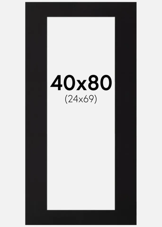 Dette elegante passepartout i sort er det perfekte valg for at give dine billeder en professionel og stilren indramning. Med en skråtskåret inderkant og en hvid kerne skabes en subtil kontrasteffekt, der fremhæver motivet på en smagfuld måde. Passepartouten er designet til at passe billeder i størrelsen 25×70 cm, mens ydersiden måler 40×80 cm, hvilket giver en smuk indramning med en bred kant rundt om dit kunstværk eller fotografi.