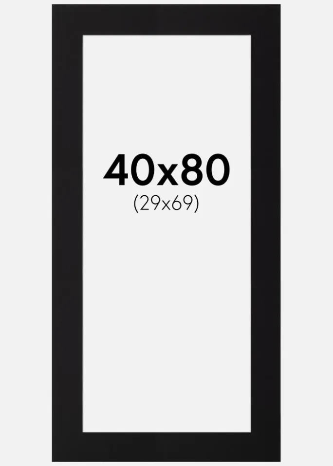 Denne elegante passepartout i sort er det perfekte valg til at give dine billeder en stilfuld indramning. Med en skråkåret inderkant og en hvid kerne skabes en subtil kontrasteffekt, der giver dybde og elegance til dine kunstværker eller fotografier. Passepartouten er designet til at passe billeder i størrelsen 30×70 cm, mens ydermålet er 40×80 cm, hvilket gør den ideel til både moderne og klassiske indramninger.