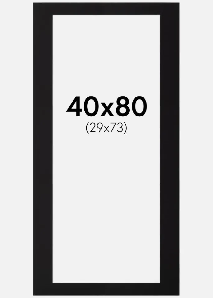 Denne elegante passepartout i sort er det perfekte valg for at give dine billeder en professionel og stilren indramning. Med en skråtskåret inderkant og en hvid kerne skabes en subtil kontrasteffekt, der fremhæver motivet på en smagfuld måde. Passepartouten er designet til at passe billeder i størrelsen 30×74 cm, mens ydermålet er 40×80 cm, hvilket giver en smuk indramning med en jævn og harmonisk kant rundt om dit kunstværk eller fotografi.