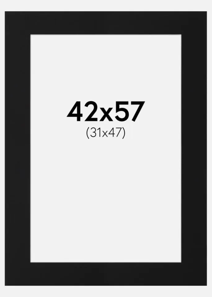 Denne passepartout er designet til at passe billeder i størrelsen 32×48 cm, mens ydre dimensionen er 42×57 cm. Dette gør den ideel til både moderne og klassiske indramninger, uanset om det drejer sig om portrætter, kunstværker eller fotografier. Den matte sorte overflade giver et professionelt udseende, der passer i alle miljøer.