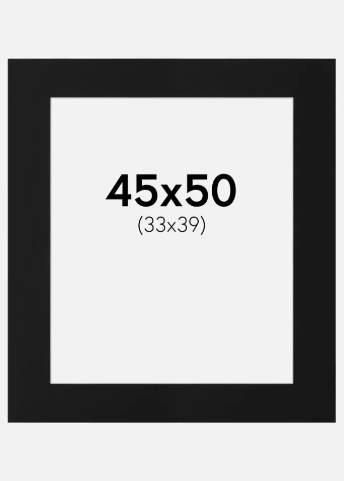 Denne elegante passepartout i sort er det perfekte valg for at give dine billeder og kunstværker en stilfuld indramning. Med en skråtskåret inderkant og en hvid kerne skabes der en subtil kontrasteffekt, der giver dybde og elegance til dit motiv. Passepartouten er designet til at passe billeder i størrelsen 34×40 cm, mens ydermålet er 45×50 cm, hvilket gør den ideel til både moderne og klassiske indramninger.
