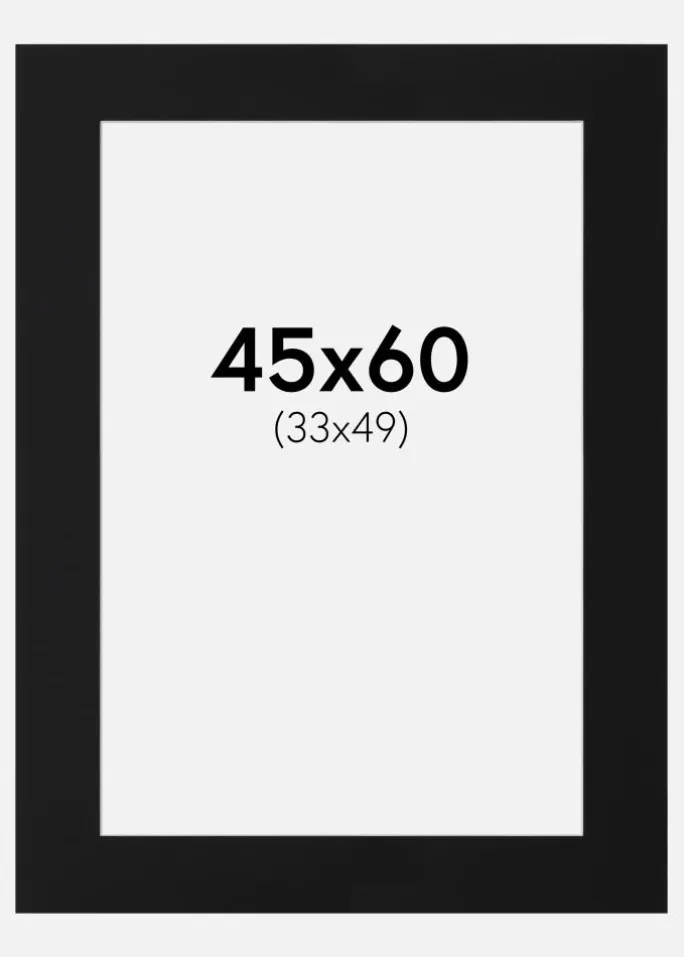Denne elegante passepartout i sort er det perfekte valg for at give dine billeder og kunstværker en stilfuld indramning. Med en skråtskåret indre kant og en hvid kerne skabes en subtil kontrasteffekt, der giver dybde og elegance til dit motiv. Passepartouten er designet til at passe billeder i størrelsen 34×50 cm, mens ydermålet er 45×60 cm, hvilket gør den ideel til både moderne og klassiske indramninger.