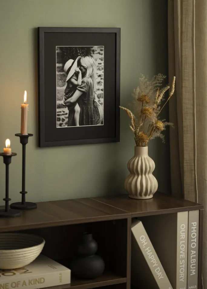 Fremstillet af syrefrit karton, beskytter denne passepartout dine billeder mod at gulne over tid. Det syrefrie og PH-neutrale materiale sikrer, at dine kunstværker bevarer deres farve og skarphed i lang tid. Den matte sorte overflade giver et professionelt og tidløst udseende, hvilket gør den velegnet til både moderne og klassisk indramning.