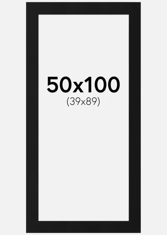 Denne elegante passepartout i sort er det perfekte valg for at give dine billeder en stilfuld indramning. Med en skråskåret indre kant og en hvid kerne skabes en subtil kontrasteffekt, der giver dybde og elegance til dit motiv. Passepartouten er designet til at passe billeder i størrelsen 40×90 cm, mens ydre mål er 50×100 cm, hvilket gør den ideel til at fremhæve både portrætter og kunstværker.