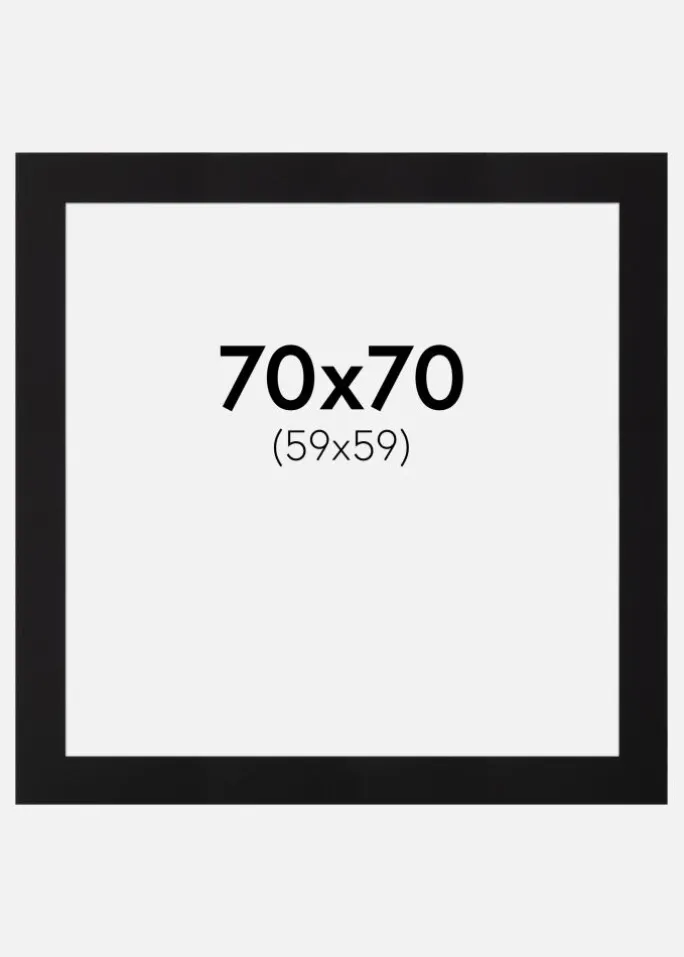 Denne elegante passepartout i sort er det perfekte valg for at give dine billeder en professionel og stilren indramning. Med en skråtskåret inderkant og en hvid kerne skabes en subtil kontrasteffekt, der giver dybde og elegance til dit motiv. Passepartouten er designet til at passe billeder i størrelsen 60×60 cm, mens ydermålet er 70×70 cm, hvilket giver en smuk indramning med en jævn og harmonisk kant.