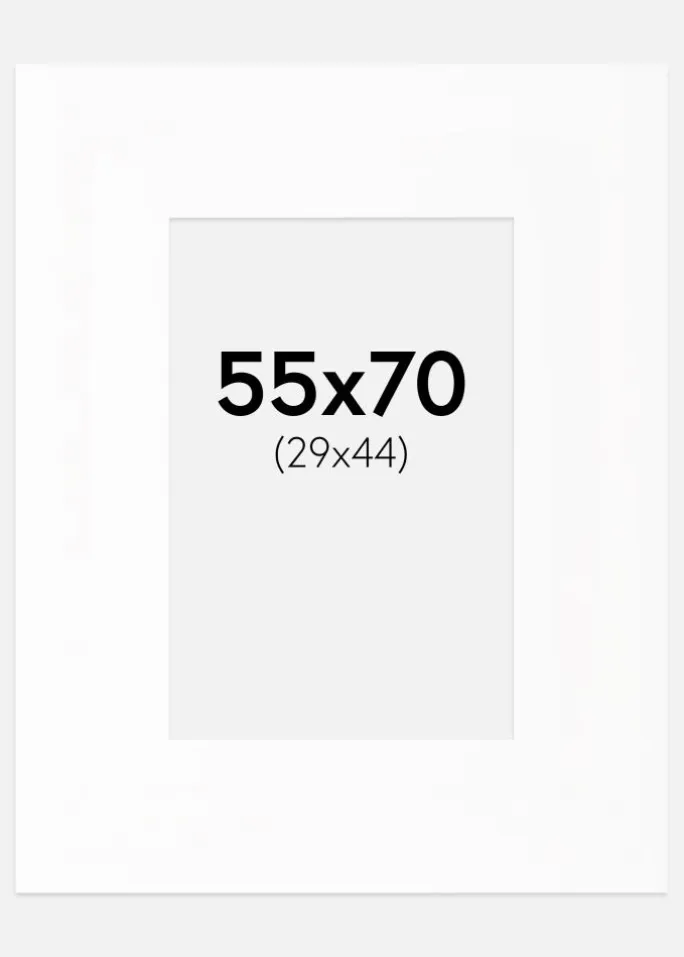 Oplev vores XL passepartout i en elegant hvid nuance, perfekt til at give dine billeder og kunstværker en stilfuld indramning. Med en skråskåret hvid kerne skabes en dybde, der fremhæver motivet på en sofistikeret måde. Denne passepartout er designet til at passe billeder i størrelsen 30×45 cm, mens de ydre mål er generøse 55×70 cm, hvilket giver ekstra brede kanter og skaber en følelse af rummelighed.