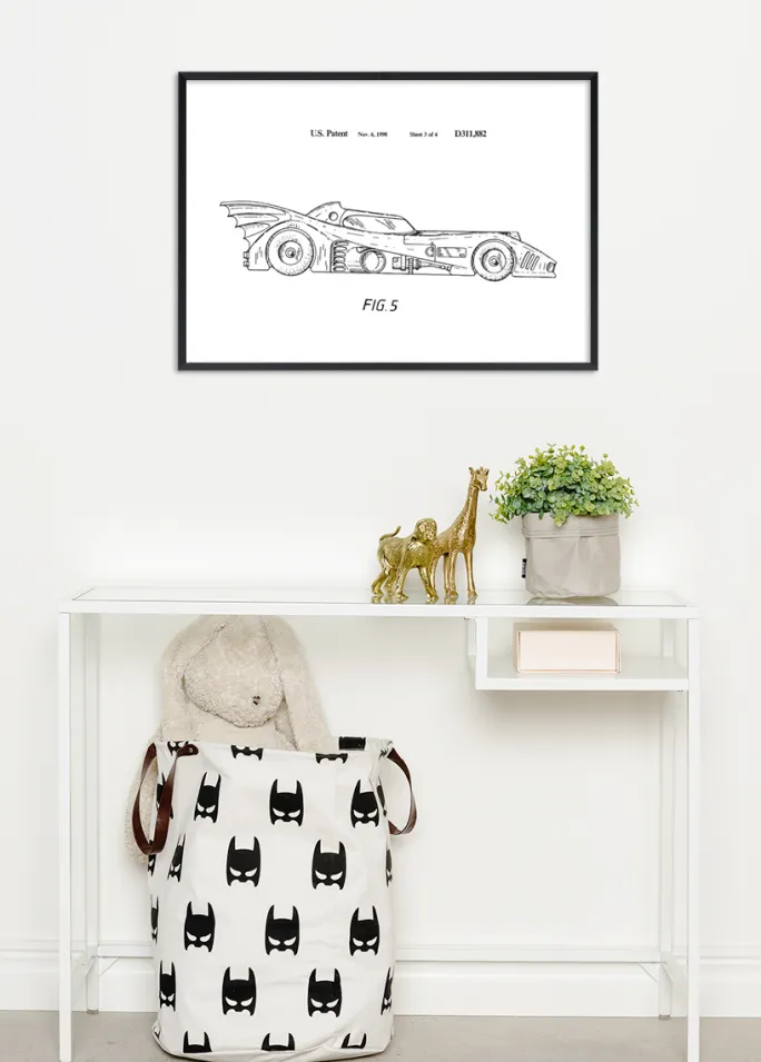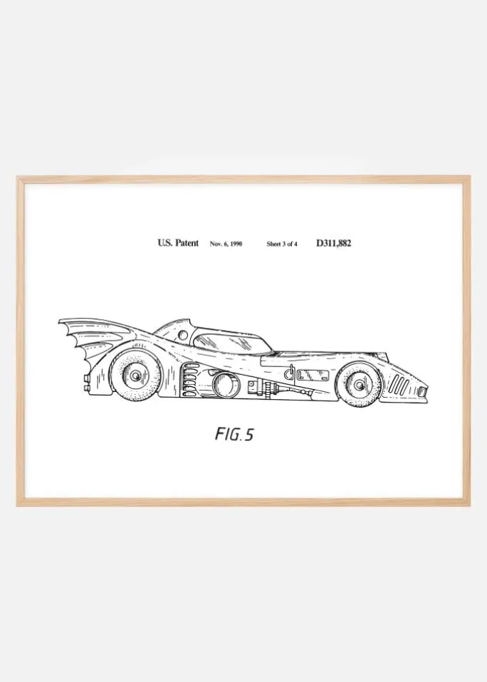 Denne fascinerende patentplakat fremkalder en følelse af både nostalgi og fremtidstro. Den afbilder patenttegningen af et ikonisk design af Batman-bilen, fastlagt i det amerikanske patent D311,882 fra 6. november 1990. Den detaljerede tegning er ikke blot en anerkendelse af teknisk dygtighed, men også et kunstværk, der vækker beundring. Med sine distinkte linjer og gennemtænkte detaljer bliver denne patentplakat et fremragende samtaleemne og en kilde til inspiration i alle miljøer, fra moderne kontorer til retroinspirerede dagligstuer.