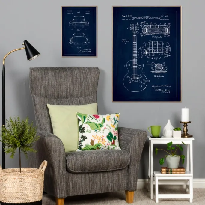Denne patenttegning er en ideel dekoration for musikere, musikproducenter, og alle som har en passion for musikkens historie og design. Den fanger essensen af musikalsk kreativitet og det håndværk, der ligger bag fremstillingen af sådanne ikoniske instrumenter. Som et stykke vægkunst, giver denne patent plakat ikke kun en visuel interesse til rummet, men fungerer også som en hyldest til de tekniske fremskridt, der har formet lyden af generationer.