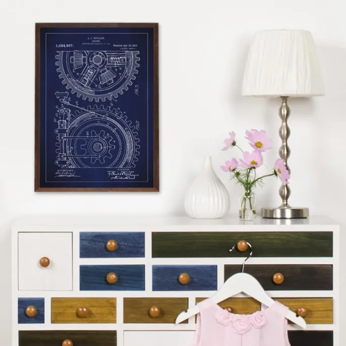 Dekorer dit rum med denne elegante patentplakat, som detaljeret skildrer A. I. Hovlands opfindelse af en gearkassemekanisme, patentnummer 1.024.897, givet den 30. april 1912. Dette indviklede arbejde af teknisk tegning fremhæver en epoke af innovation og mekanisk konstruktion. Med sin dristige kontrast og komplekse illustrationer er dette en charmerende tilføjelse til en ingeniørs kontor, et værksted, eller enhver industriel sammenhæng, hvor maskineri og design værdsættes højt.